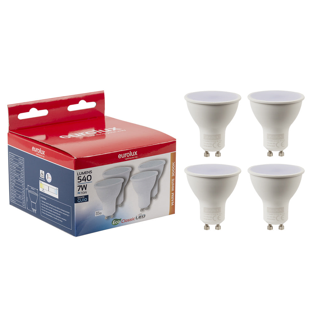 EUROLUX LED 4 PER PACK GU10 7W 3000K G1105WW
