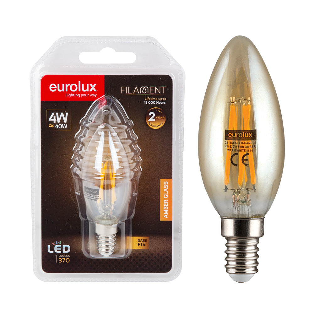 EUROLUX LED AMBER FILAMENT CANDLE E14 4W G511SES