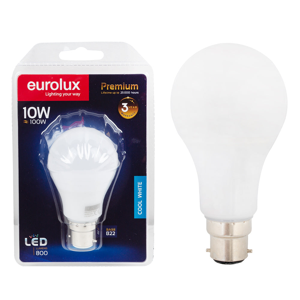EUROLUX LED BULB COOL WHITE A65 10W B22 G925