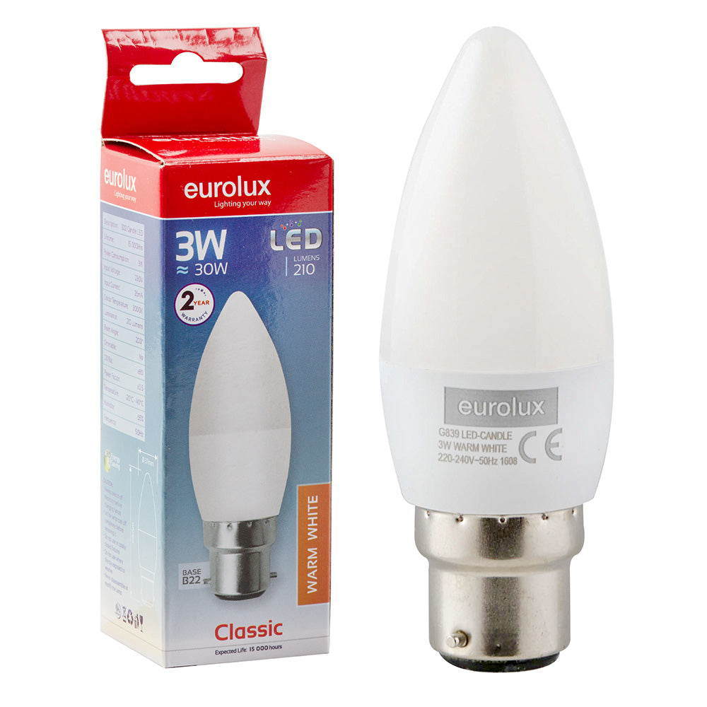 EUROLUX LED CANDLE PLASTIC WARM WHITE 3W B22 G839
