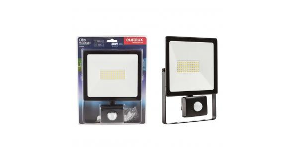 EUROLUX LED FLOODLIGHT & SENSOR BLACK 40W 4000K FS293BP