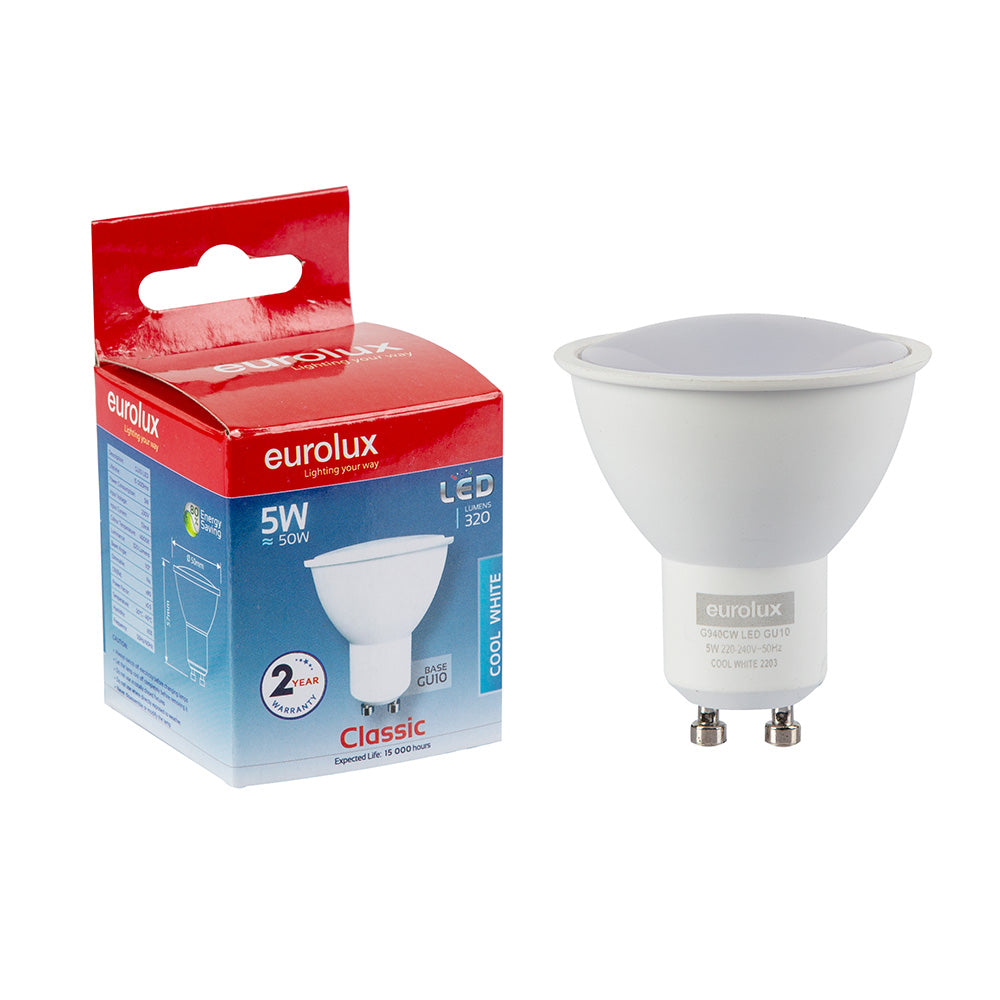 EUROLUX LED PLASTIC COOL WHITE GU10 5W G940CW EX